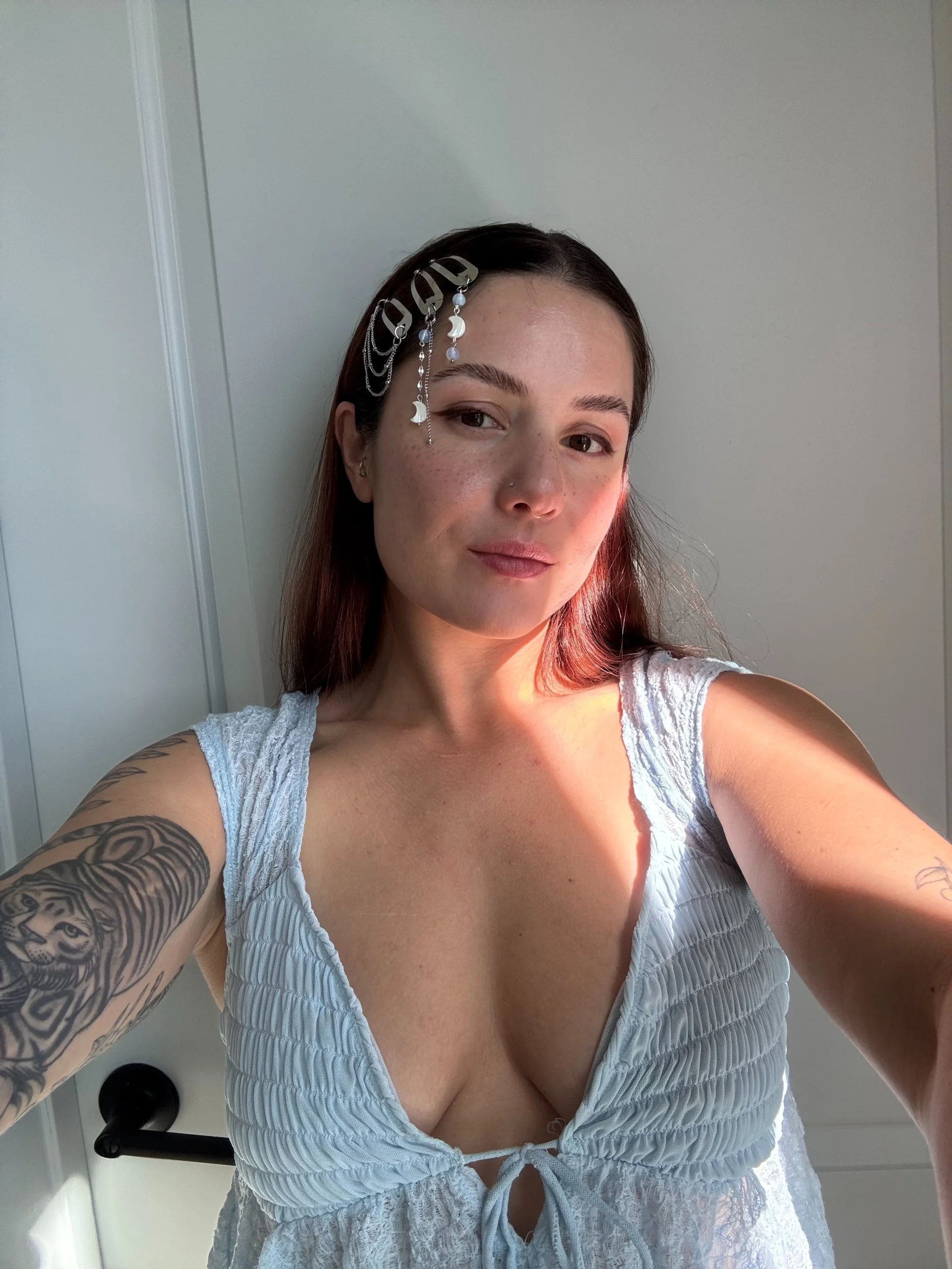 Designed to feel light and adaptable, the Mira clips can be worn individually for a subtle accent or layered together for a more dimensional, expressive look. Their soft tones and movement make them easy to style across both minimal and more celestial-inspired outfits.