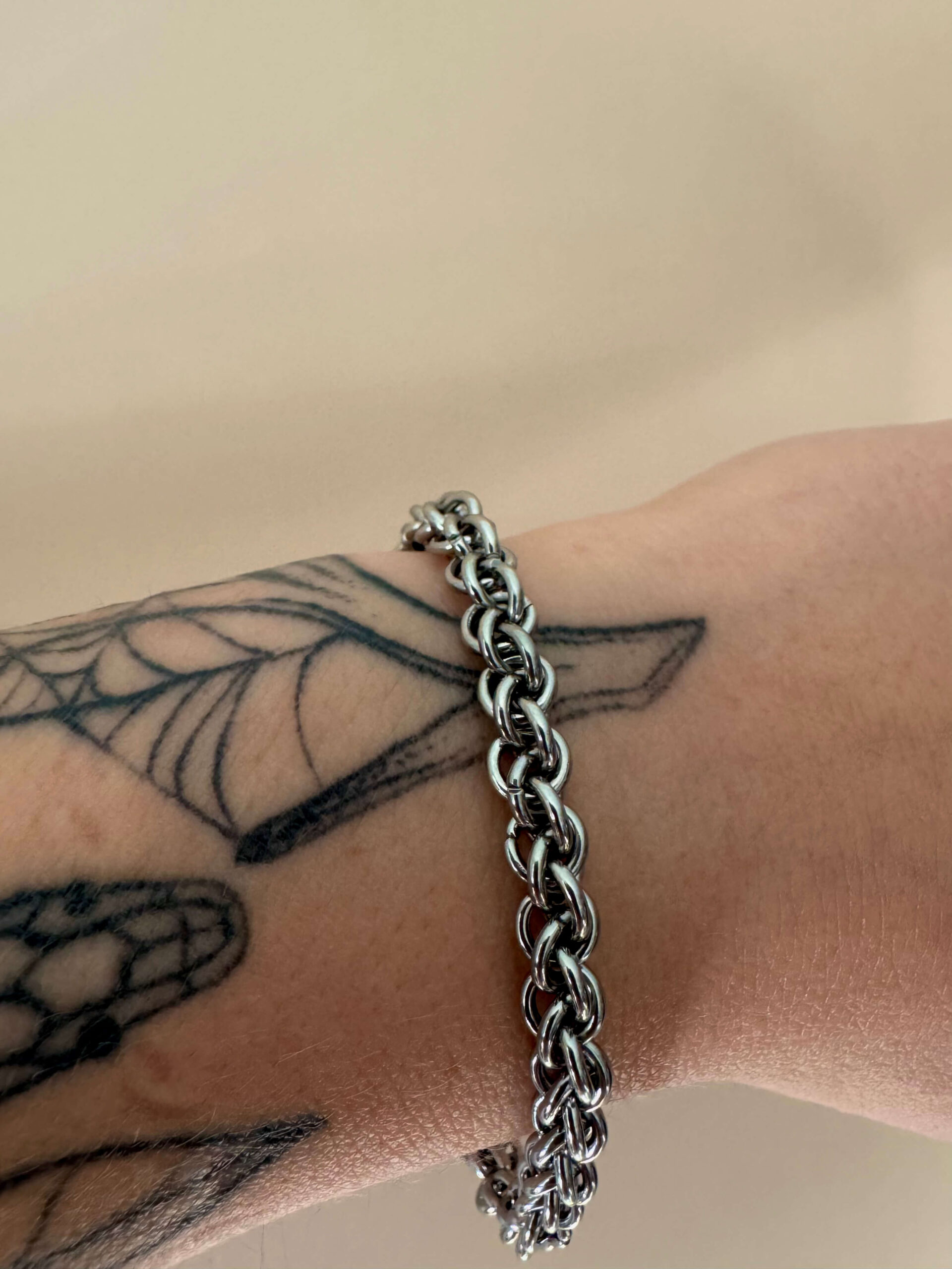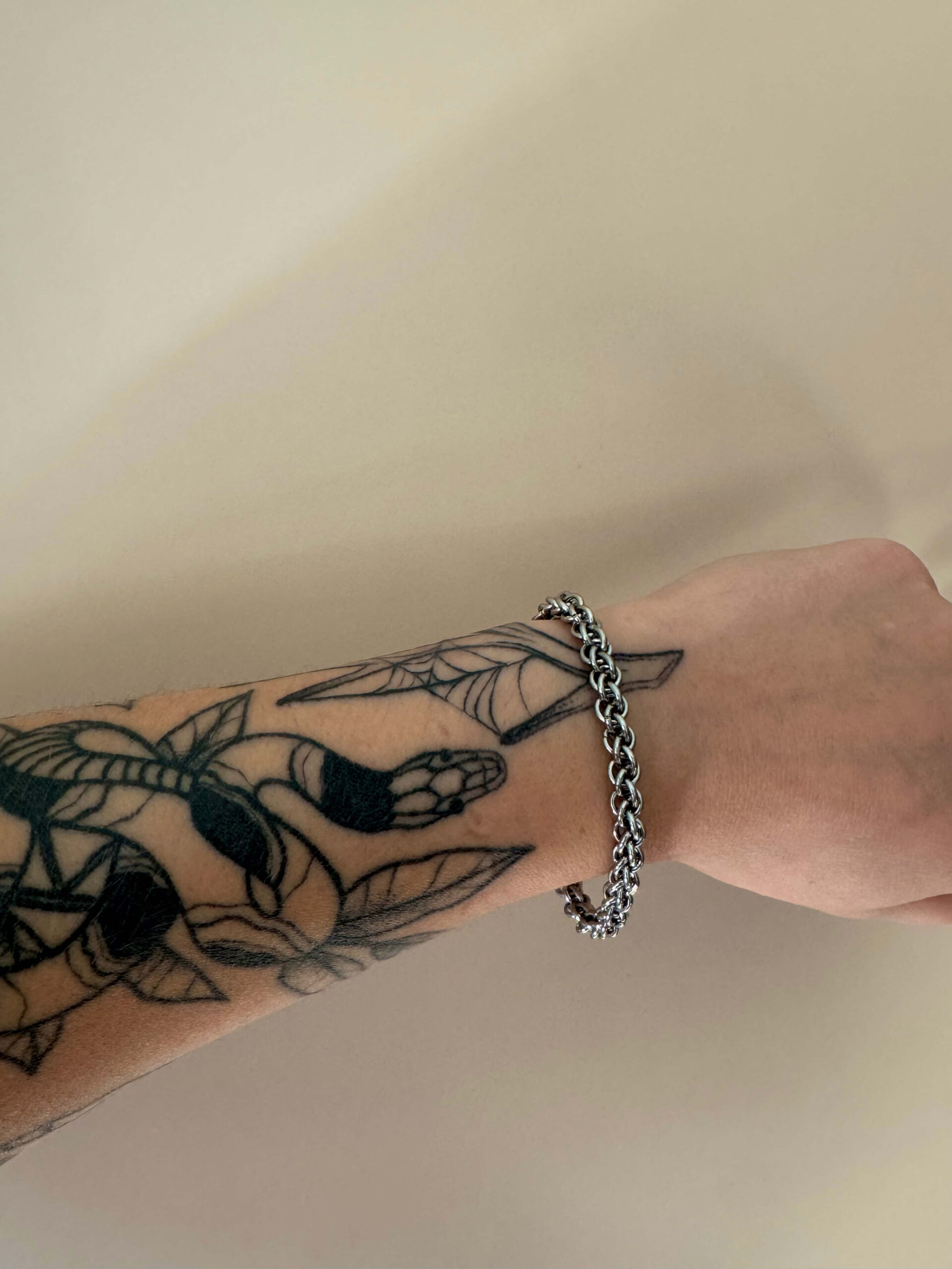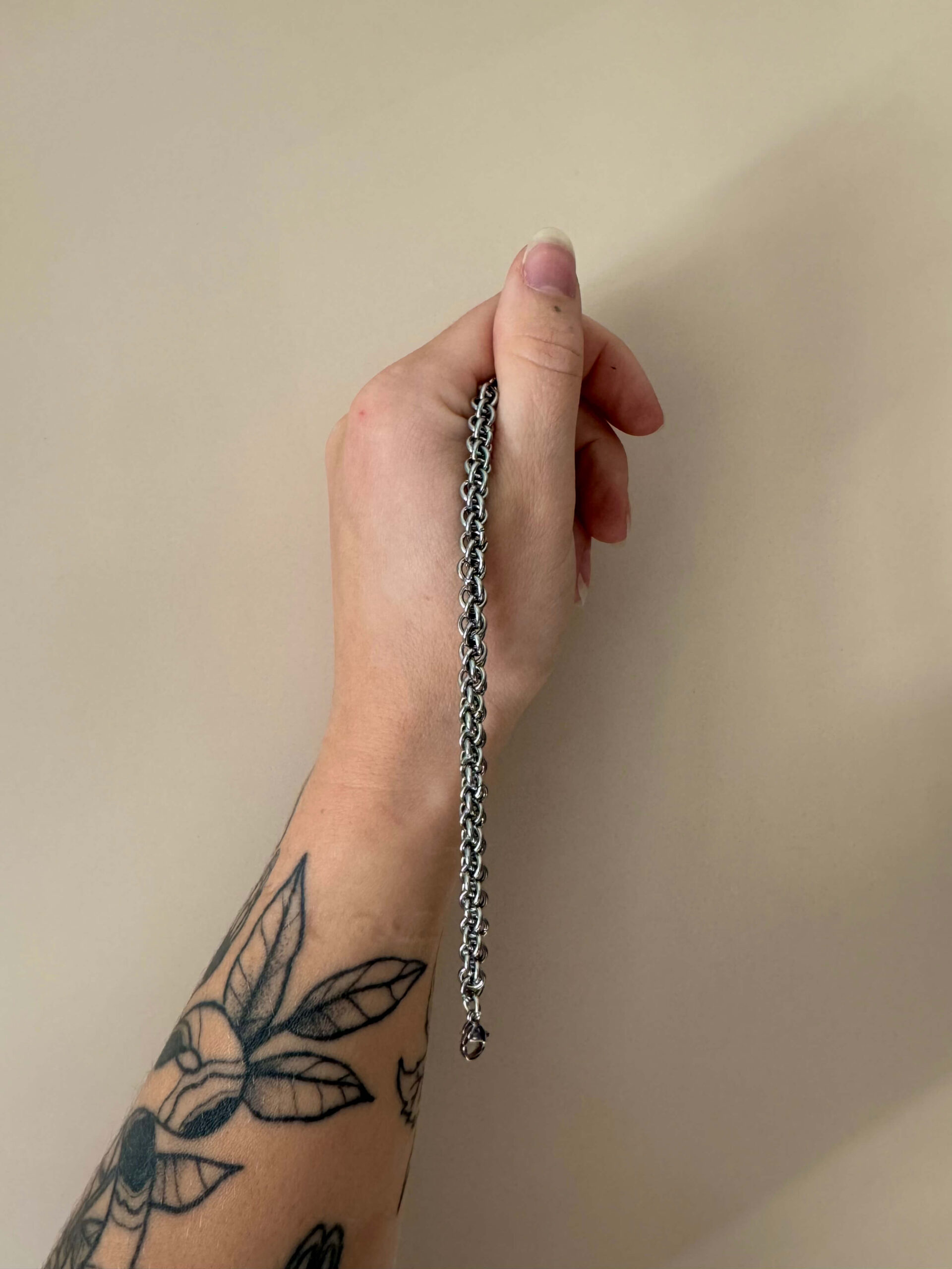 Minimal, light, and versatile. This stainless steel chain bracelet is built from a tight interwoven pattern. Refined yet minimal, the Rue Chain is designed for layering or wearing alone — a piece that integrates seamlessly into your everyday.