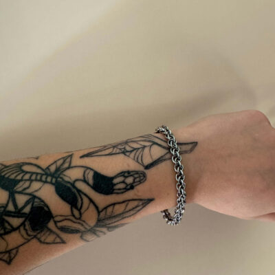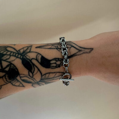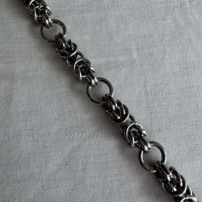 The catena bracelet is a handcrafted chainmail bracelet made from stainless steel, designed for everyday wear.