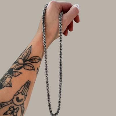 The catena chain is a handcrafted chainmail necklace made from stainless steel, designed for everyday wear.